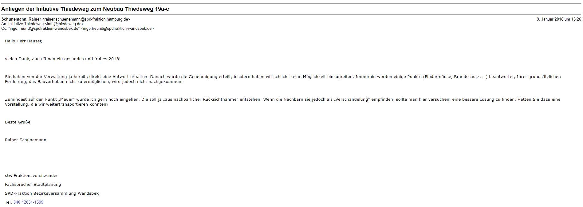 Zudem haben wir am 09.01.2018 eine Antwort vom Bezirksamt und zeitgleich von der SPD erhalten.